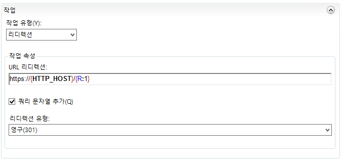 URL 리디렉션에는 https://{HTTP_HOST}/{R:1}